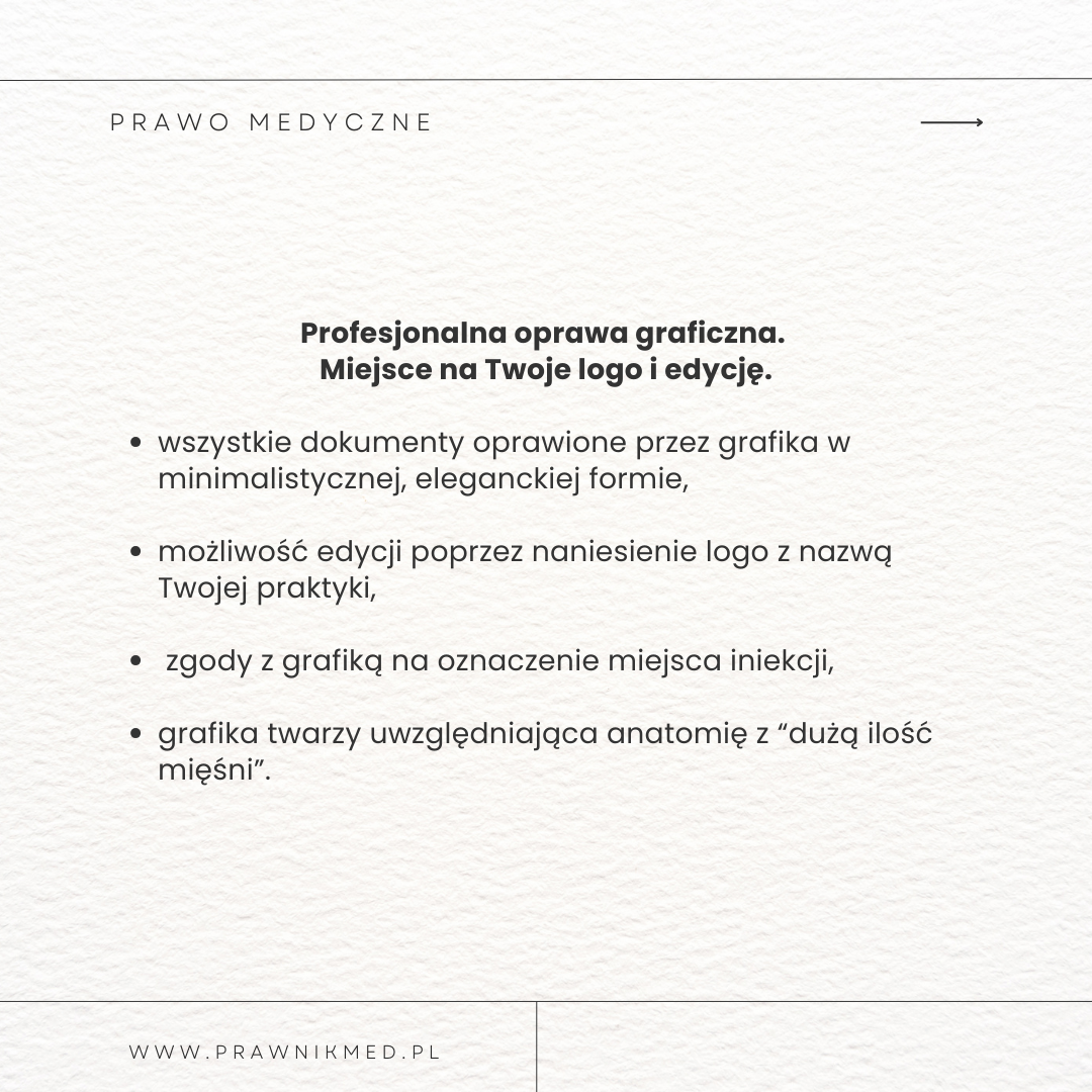 Tylko odrębne zgody na konkretne procedury są warunkiem uzyskania od pacjenta świadomej i dobrowolnej zgody. Wykonując procedurę Off-label musisz posiadać zgodę na ten konkretny zakres, a nie jakąkolwiek przy użyciu toksyny.